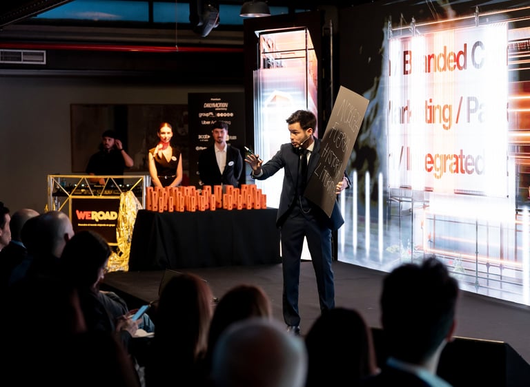 He ejercido como presentador y maestro de ceremonias en galas, entregas de premios y graduaciones para The Valley Tech, Renfe, La Salle, los premios Best!N de IPMark... Todo ello acompañado de magia.